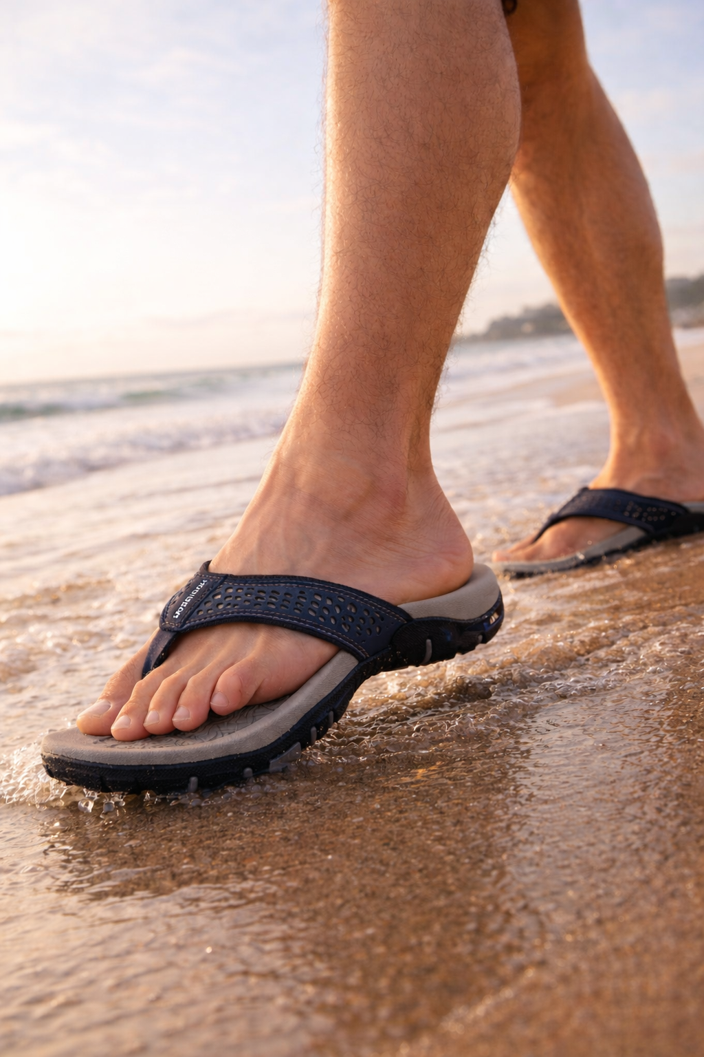 Engineered for those who value comfort without compromise. These orthopedic sport thong sandals feature a durable PU leather strap with a soft lining to prevent irritation, while the anatomically shaped footbed provides targeted arch support to reduce fatigue throughout the day. The thick rubber outsole delivers reliable grip and shock absorption, ensuring stability on any surface. Lightweight, water-ready, and versatile perfect for beach days, casual walks, or everyday wear.